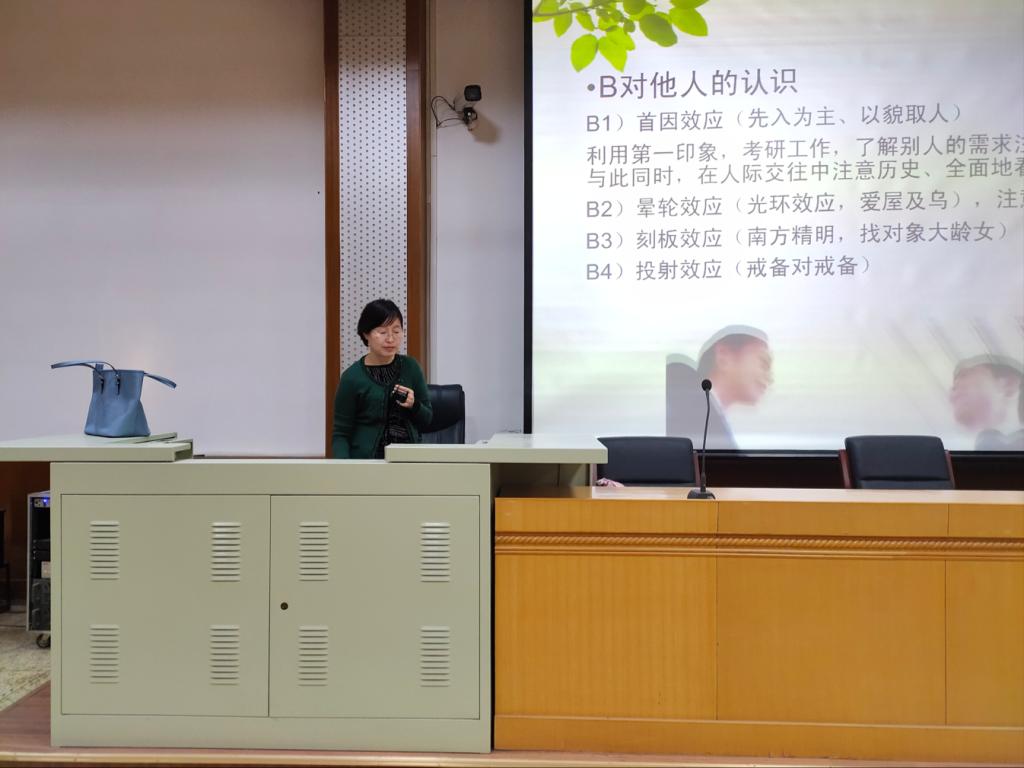 吴彦敏率先强调了大学生心理健康的重要性,又从生活适应、人际交往、婚恋观和职业生涯四个方面讲述了什么是健康的心理、怎样帮助形成健康的心理等具体问题,帮助学生发掘对于生活和价值观的新见解,促进学生心理的健康发展。过程中吴老师讲述了许多生活中鲜活的案例,使学生们在现实案例中体会心理健康的重要性,同时,吴老师带领学生进行了虚拟拍卖会活动,拍卖品为生活中重要的感情和工作等,生动形象地引导学生们深入思考心理问题。