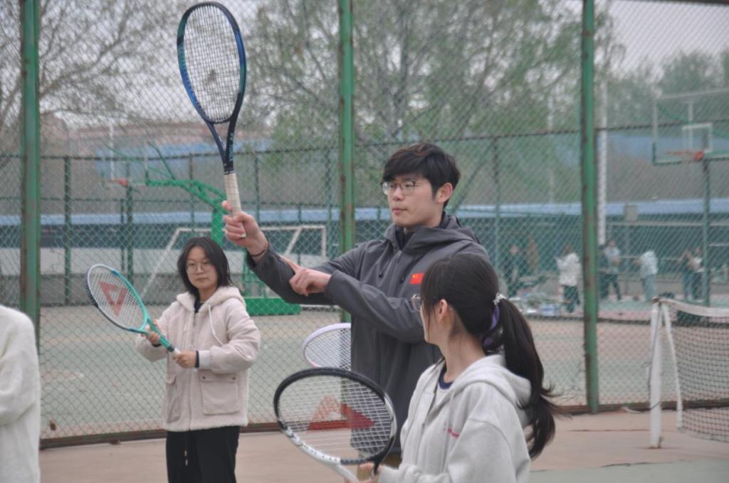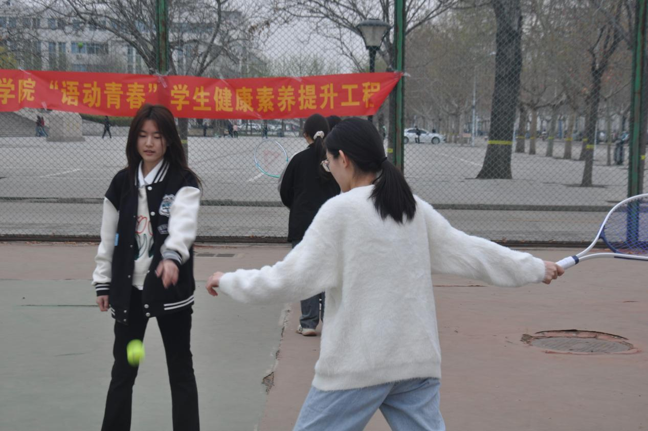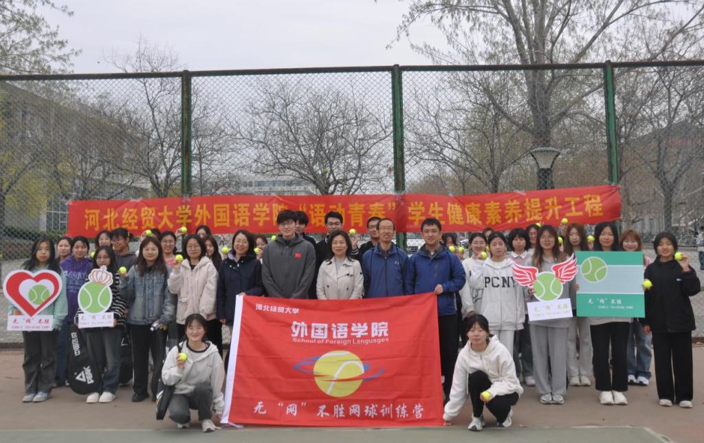 4月1日下午,正规滚球app平台官网在学校网球场举办“语动青春”学生健康素养提升工程启动仪式暨无“网”不胜网球训练营开营仪式。学院党委书记仇静莉、党委副书记刘磊、副处级辅导员宋丹、商务英语专业2023级班主任、体育教学部教师张嘉奇、院团委书记付磊及50余名同学参加。