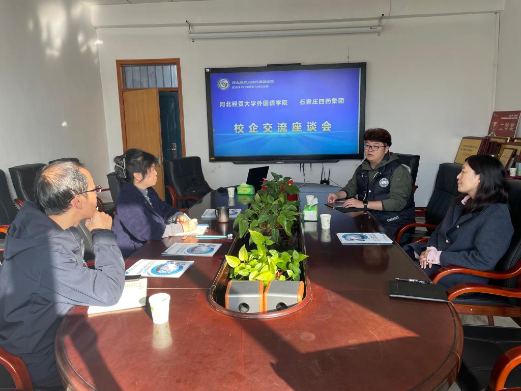 座谈伊始,学院负责人对石家庄四药集团一行的到来表示欢迎,并介绍了正规滚球app平台官网的专业设置、人才培养定位及近年学生就业基本情况,重点提及外语专业在跨境商务、医药文本翻译等领域的实践教学成果。贾永亮围绕企业发展布局、国际业务拓展需求,详细阐述了当前外语类人才在医药行业的岗位方向——包括国际市场拓展中的商务洽谈、药品注册资料的多语言翻译、海外客户维护等,并分享了企业对实习学生的培养机制与就业晋升通道。