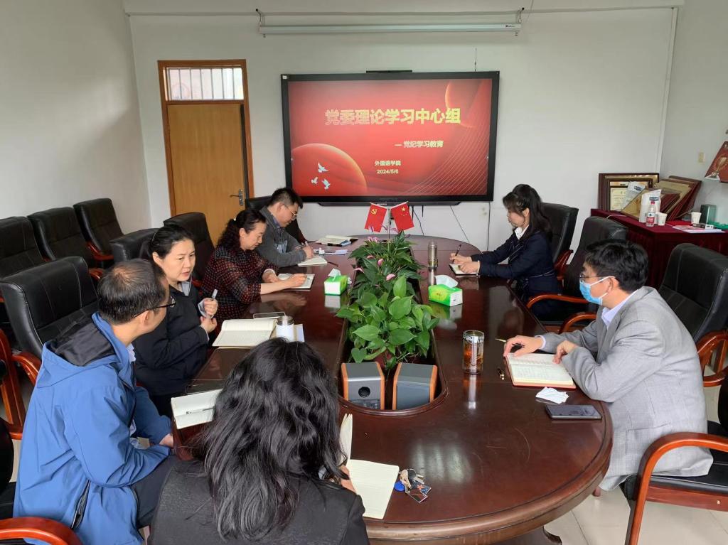2024年5月6日上午,学院党委理论学习中心组在会议室集中学习《中国共产党纪律处分条例》和习近平总书记关于全面加强党的纪律建设重要论述。院党委书记仇静莉主持学习并领学,院党委副书记刘磊、院党委常委、院长张润分别领学《中国共产党纪律处分条例》其他各章内容。