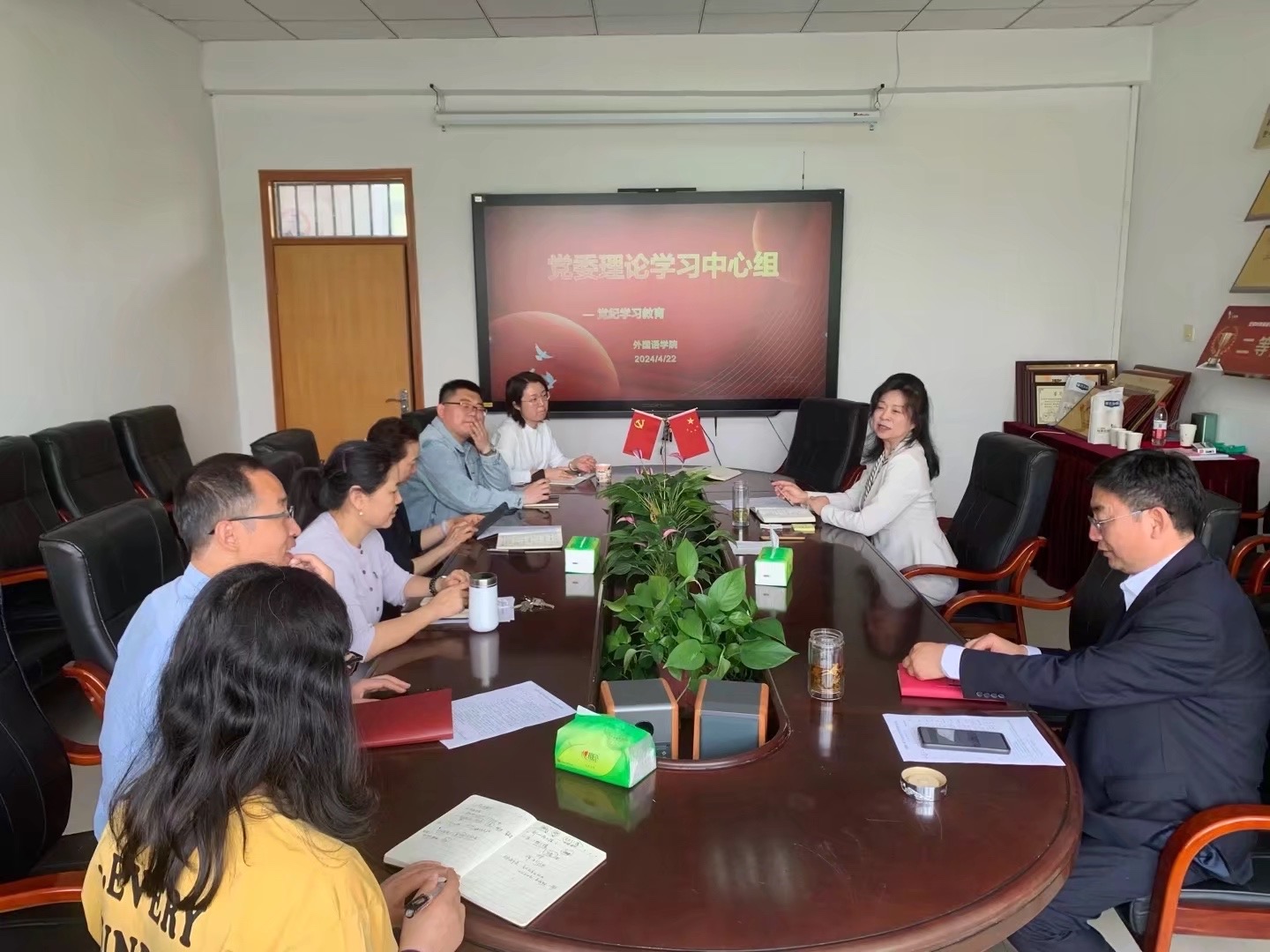 2024年4月22日上午,学院党委理论学习中心组在会议室召开了党纪学习教育研讨会。会上,院党委书记仇静莉指出,要坚持以习近平新时代中国特色社会主义思想为指导,组织全体教职工,特别是党员教师认真学习《条例》和习近平总书记关于全面加强党的纪律建设重要论述,做到学纪、知纪、明纪、守纪,搞清楚党的纪律规矩是什么,弄明白能干什么、不能干什么,把遵规守纪刻印在心,内化为言行准则,进一步强化纪律意识、加强自我约束、提高免疫能力,增强政治定力、纪律定力、道德定力、抵腐定力,始终做到忠诚干净担当。