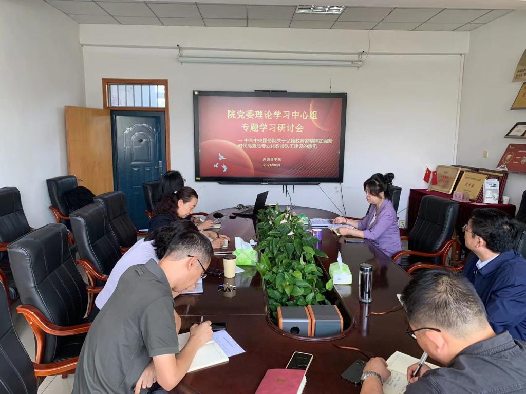 9月23日上午,学院党委理论学习中心组在会议室开展专题学习,学习研讨习近平总书记《论教育》、习近平总书记在全国教育大会上的重要讲话精神以及《中共中央 国务院关于弘扬教育家精神加强新时代高素质专业化教师队伍建设的意见》。学院党委书记仇静莉主持学习并讲话,院长张润、副书记刘磊、副院长张艳、杨清珍列席会议。