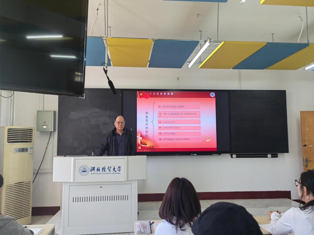 4月14日下午,正规滚球app平台官网在四教 201 教室举行第 58 期入党积极分子培训开班仪式暨专题党课。本次培训以学习贯彻党的二十大、党的二十届二中、三中全会精神为主线,聚焦 “外语+党建”特色,通过理论与实践相结合的方式,为入党积极分子提供全面、系统的教育培训,旨在增强他们的政治意识、理论素养和实践能力,为党的事业培养更多优秀人才。活动由行政党支部书记田晓光主持,第二学生党支部书记康文霞和第58期全体入党积极分子参加。