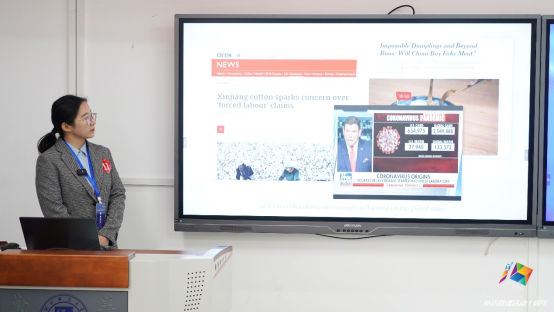 比赛分为微课作品展示和教学设计讲解两个环节。微课作品从美国政客耶伦访华前后鼓吹中国新能源技术“产业过剩”这一真实而富有时代性的新闻话题出发,批驳其谬论,向学生讲授议论文中驳论的写作技巧。在随后的教学设计讲解中,于佳慧以清晰的教学思路、流利的英语表达以及颇具感染力的阐述,展示了微课作品与单元整体的教学设计,最终获得全国一等奖。